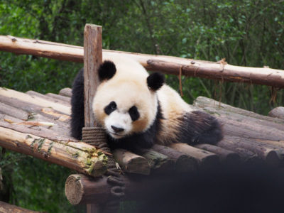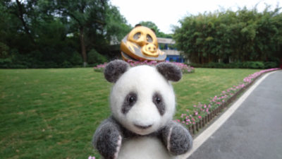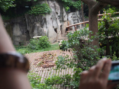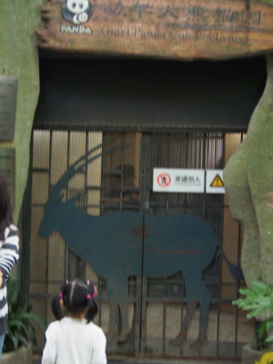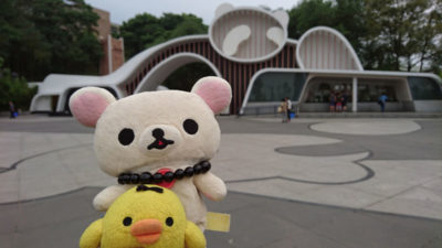 集合時間になり、車2台に分かれてパンダ基地へ移動。10分くらいであの門が見えてきました。写真で見るより小さく感じるかも。